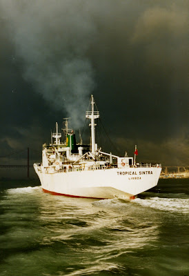 Navio frigorífico português TROPICAL SINTRA a sair de Lisboa em Dezembro de 1985 após compra pela Portline.Construído em 1974 na Noruega para a TRANSFRUTA, uma associada da Nacional especializada na operação de navios frigoríficos, este navio chamou-se inicialmente FRIGOÁRTICO e destinava-se a fazer o transporte de bananas de Angola para a Metrópole com o seu irmão gémeo FRIGOANTÁRTICO.